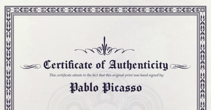 - Verified Certificate of Authenticity