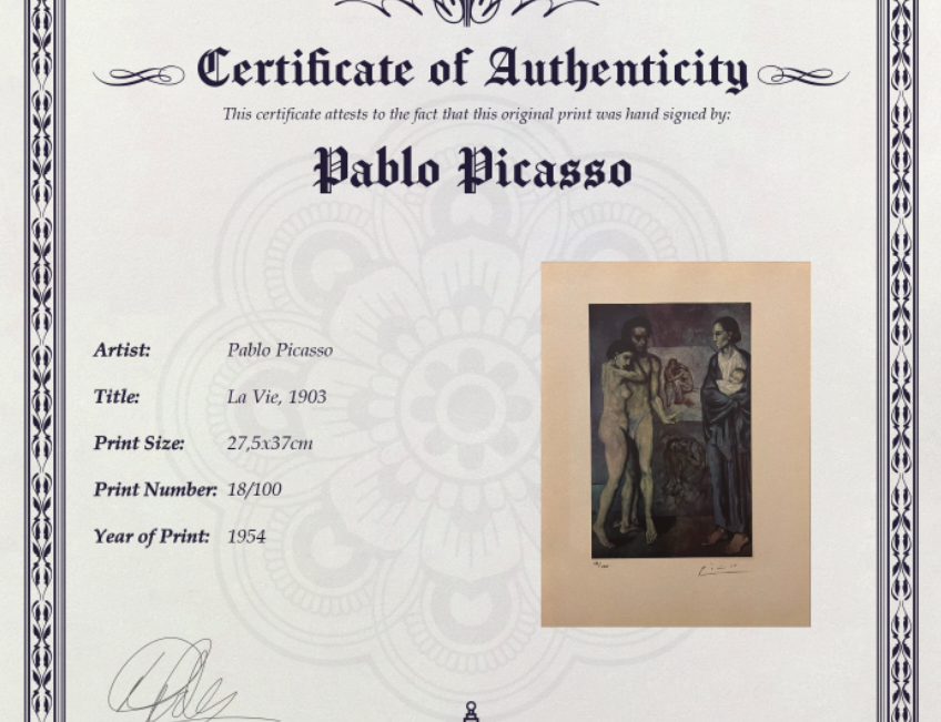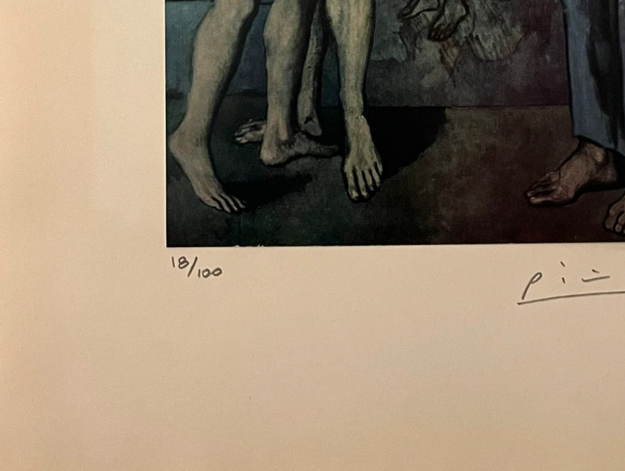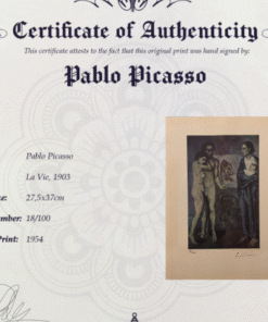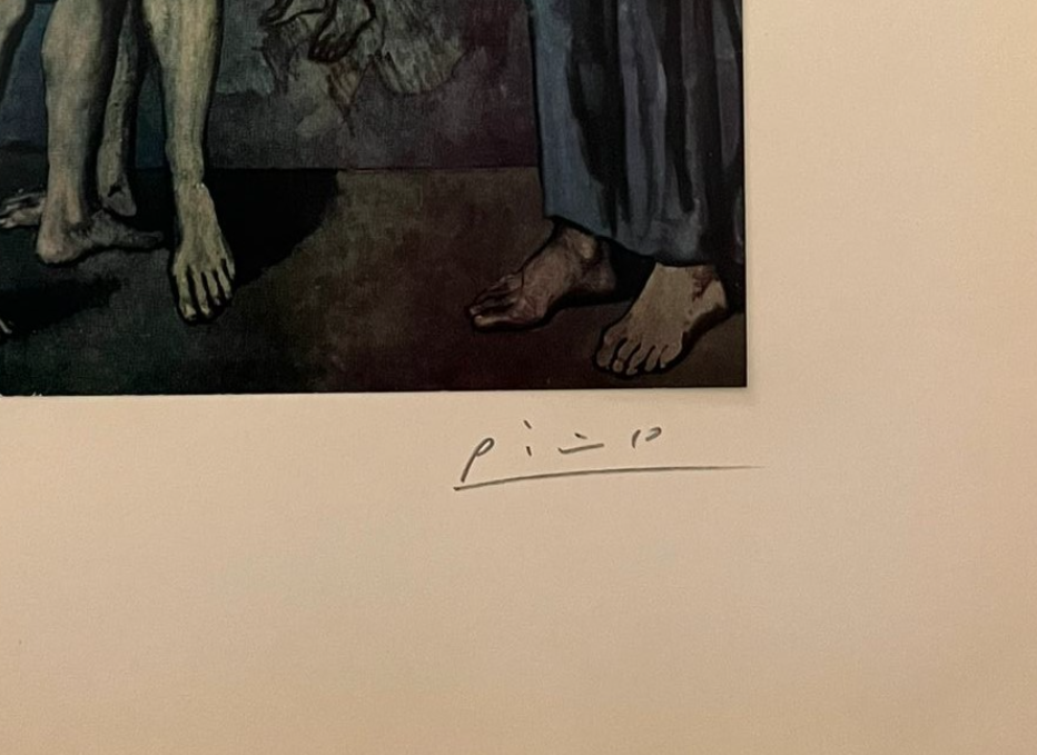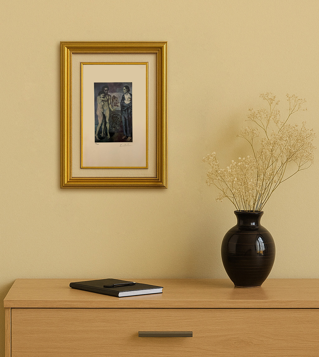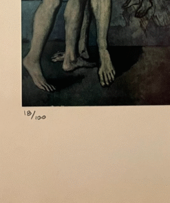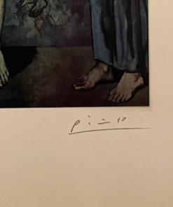 The somber blue tones and elongated forms convey themes of despair, existential questioning, and the fragility of life. This work reflects Picasso’s struggle with loss and suffering, inviting viewers into a deeply personal and contemplative narrative.