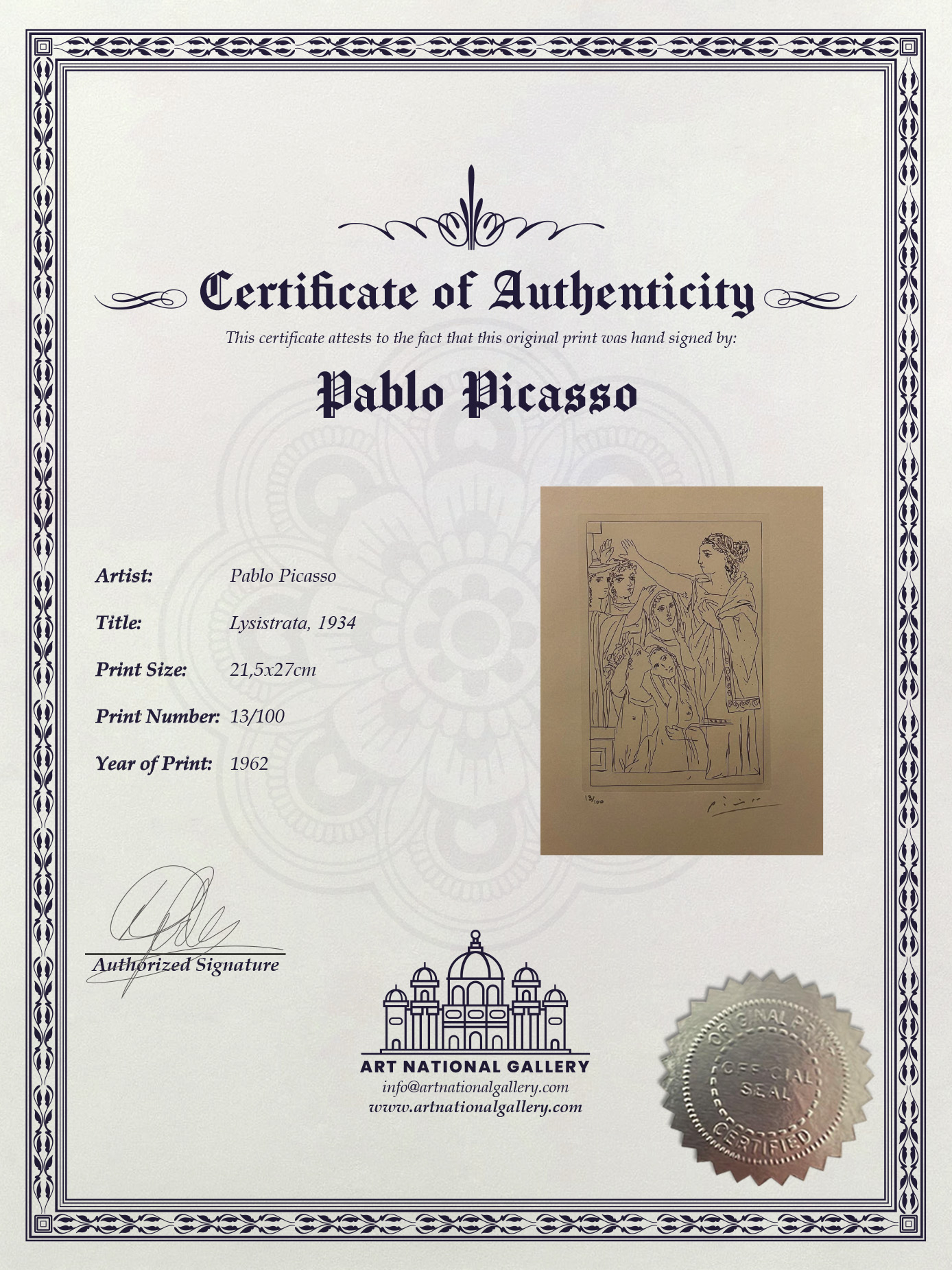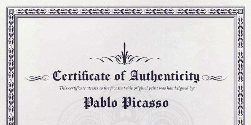 - Verified Certificate of Authenticity