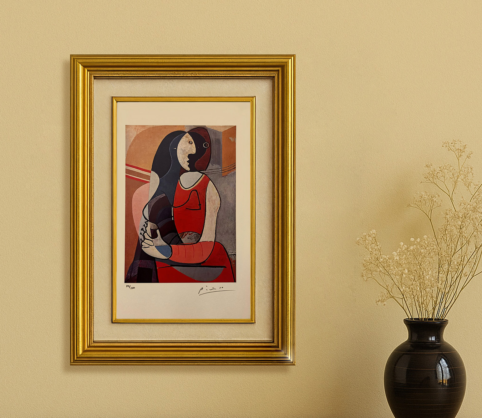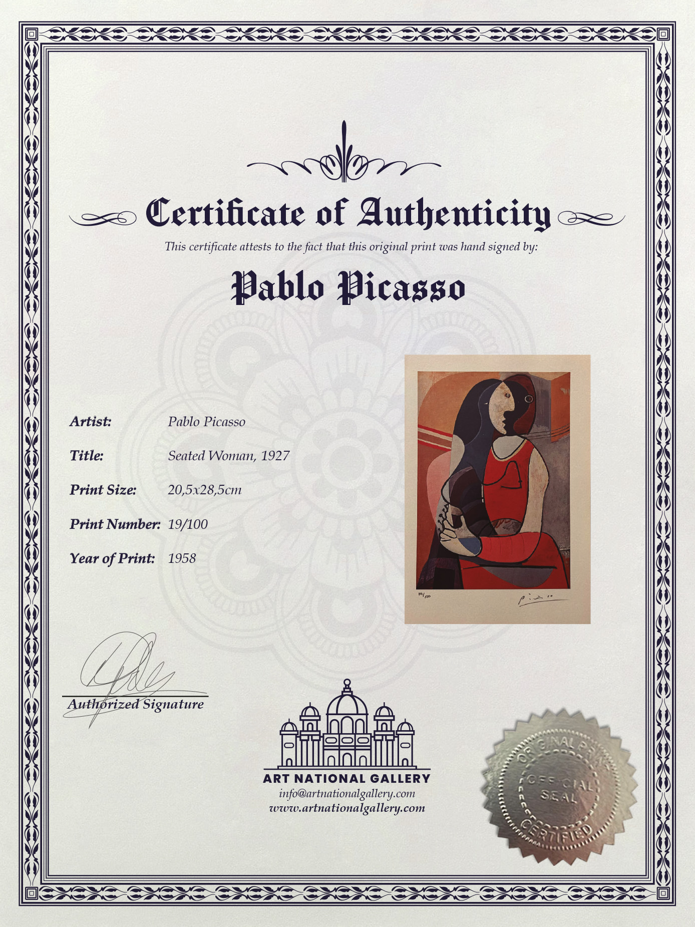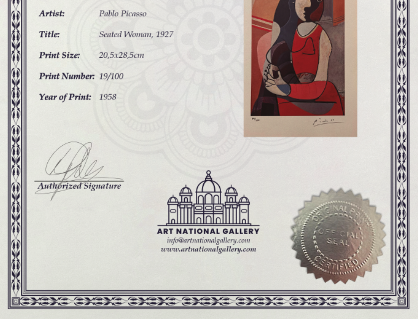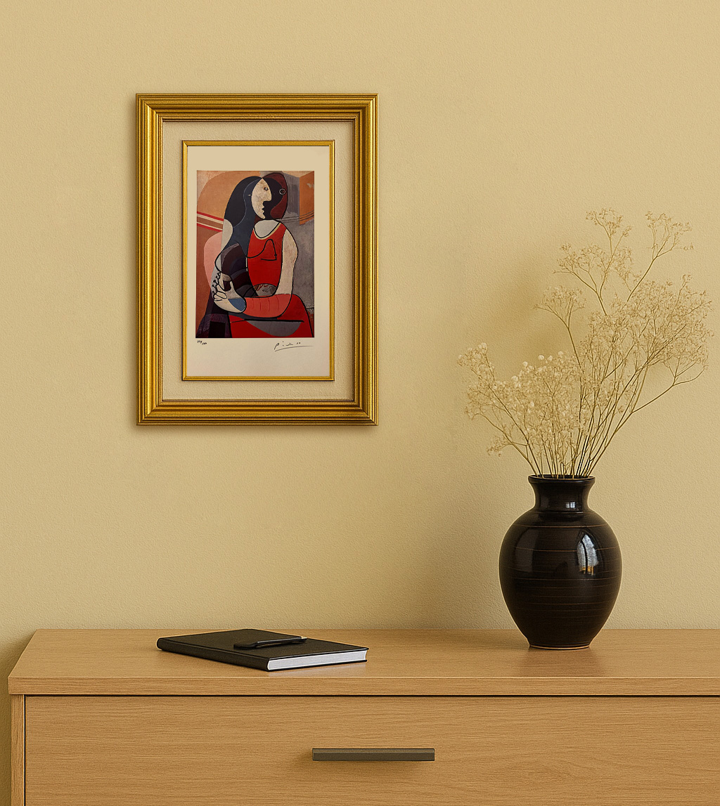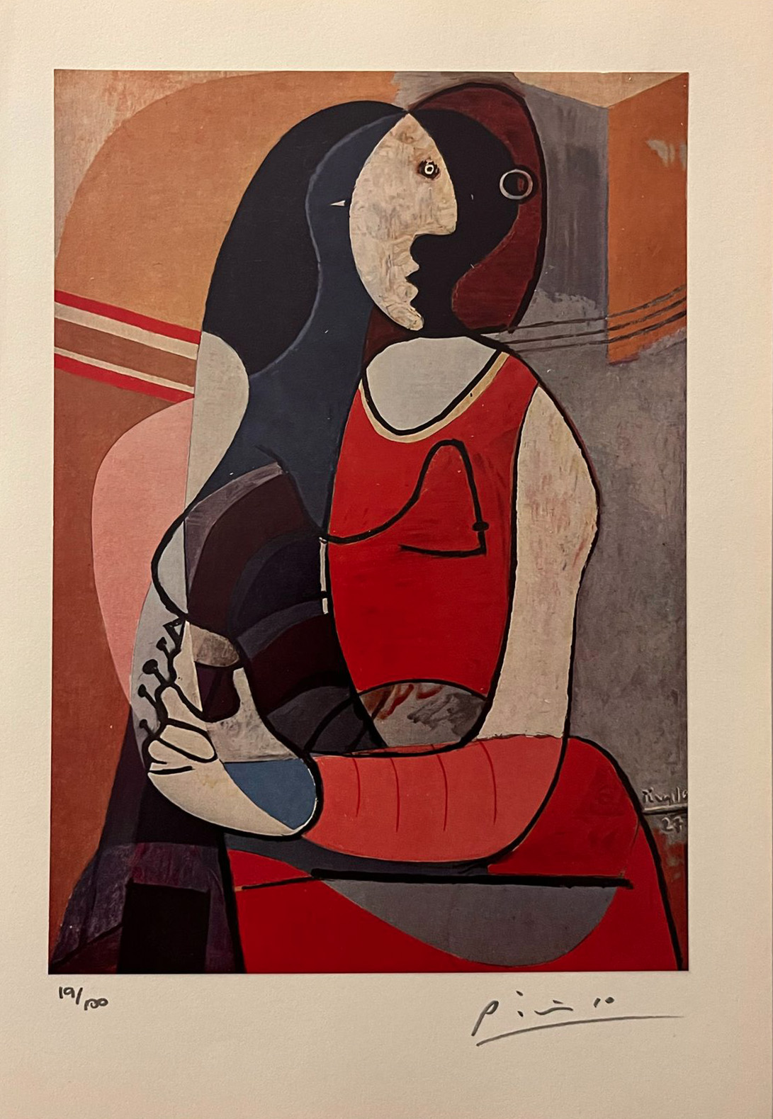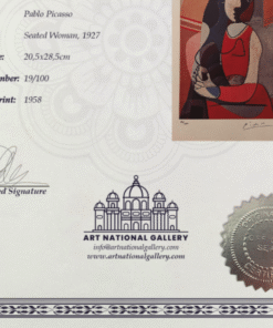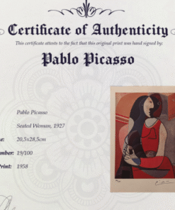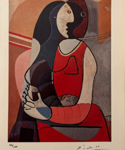 Seated Woman (1927) reflects Picasso’s shift toward surrealism, blending abstract, organic forms with emotional intensity. The female figure—likely inspired by Marie-Thérèse Walter—is portrayed with distorted anatomy and bold curves, challenging traditional ideas of beauty and structure.